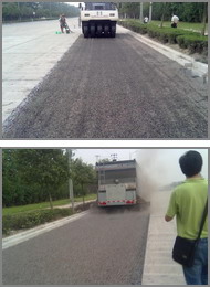 在本工程中我公司承擔了橡膠瀝青應力吸層的施工,共攤鋪橡膠瀝青應力吸收層3.5萬平方米,施工質量得到業主好評。