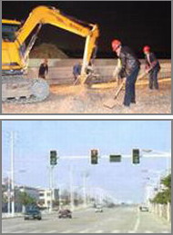 工程概述:蓮花路是合肥市經開區主干道之一,為南北走向,北起繁華大道,南至方興大道,全長約5720米。改造前為水泥混凝土路面,主車道寬22.5米,雙向6車道,改造內容為按照現狀對快、慢車道進行“白加黑”改造,改造后為全線雙向8車道的瀝青砼路面。本次瀝青的攤鋪材料選擇了橡膠瀝青應力吸收層,在合肥市市政道路上尚屬首次。橡膠瀝青應力吸收層具有良好的柔韌性、粘結性、防水性、較強的抗變形能力,在舊水泥混凝土路面瀝青罩面的過渡層中能起到防止和延緩裂縫產生、延長路面使用壽命的作用。我公司承擔了本項目的橡膠瀝青生產和應力吸收層的施工。 |